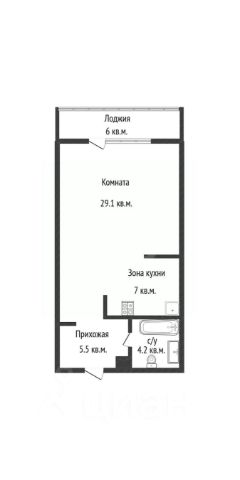 - большая комната 29.1 кв.м. с выходом на застекленную лоджию