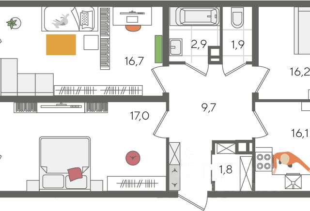 Продается квартира-студия в Жилом комплексе "Родные просторы"! В квартире выполнена качественная предчистовая отделка: Выровненные и подготовленные для отделки финишными материалами стены — улучшенная штукатурка стен. Подготовленный к укладке покрытия пол — стяжка пола. Коммуникации, выведенные в специальных местах в санузлах и кухонной зоне. Металлические входные двери с внутренней фрезеровкой и 2 замками. Металлопластиковые окна с долговечной фурнитурой. Радиаторы со встроенными терморегуляторами. Гидроизоляция пола санузлов. Крутая комплексная застройка территории с развитой инфраструктурой - на территории комплекса расположены школа на 1550 мест, 3 детских сада на 800 мест, поликлиника и частные клиники. На первых этажах домов расположены коммерческие помещения. Дворы свободны от автомобилей. Для автовладельцев предусмотрено более 2000 мест на открытых парковках по периметру микрорайона, и многоуровневые крытые наземные паркинги. Большая часть микрорайона оборудована пешеходными зонами и благоустроенными придомовыми территориями со спортивными площадками и большими детскими игровыми пространствами. Вся инфраструктура района находится в пешей доступности и располагаться внутри микрорайона. Рядом трасса М-4 - удобный выезд в сторону моря! Звоните прямо сейчас и покупайте квартиру в классном жилом комплексе!