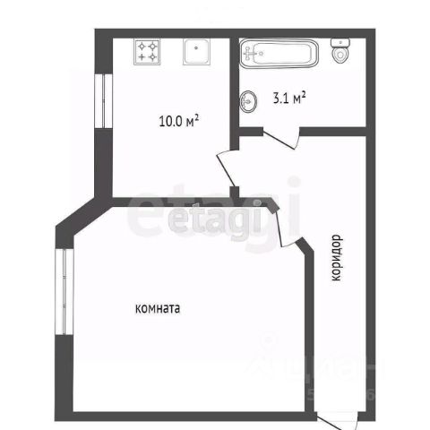 Общая площадь 38.8 м2 - огромная кухня, просторная прихожая.