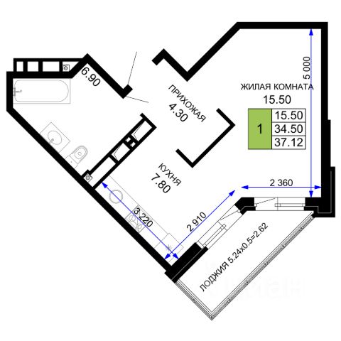 - 7 - застекленная лоджия - 6,3 кв. м