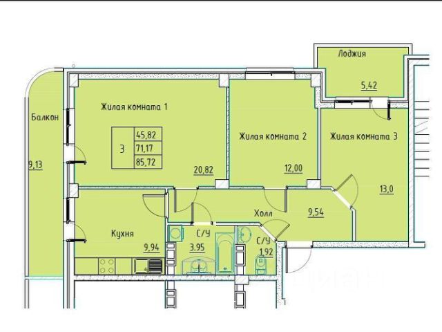 Дом 1994 года, построен по надежной технологии, где сваи забивались очень глубоко. В квартире нет ни одной трещины. В подъезде новый лифт.