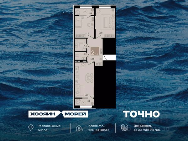 Откройте для себя мир комфорта и роскоши в жилом комплексе бизнес-класса "Хозяин морей". 9 домов от 8 до 12 этажей окружены благоустроенной территорией с прогулочными дорожками, бассейнами, детскими площадками, пространством для спорта и отдыха, двумя садиками и просторной школой. Здесь представлены разнообразные планировки: от комфортабельных студий площадью 33 кв.м до просторных семейных квартир с уникальными видами на бескрайнее море — идеальная комбинация уюта и статуса!