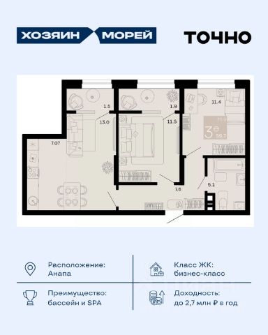 Откройте для себя мир комфорта и роскоши в жилом комплексе бизнес-класса "Хозяин морей". 9 домов от 8 до 12 этажей окружены благоустроенной территорией с прогулочными дорожками, бассейнами, детскими площадками, пространством для спорта и отдыха, двумя садиками и просторной школой. Здесь представлены разнообразные планировки: от комфортабельных студий площадью 33 кв.м до просторных семейных квартир с уникальными видами на бескрайнее море — идеальная комбинация уюта и статуса!