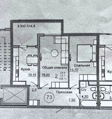 — Функциональная планировка: кухня 10,1 м², жилая площадь 29,9 м², Высота потолков 2,8 м. — изолированные комнаты площадью 16,2 и 13,7 м².