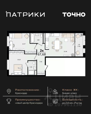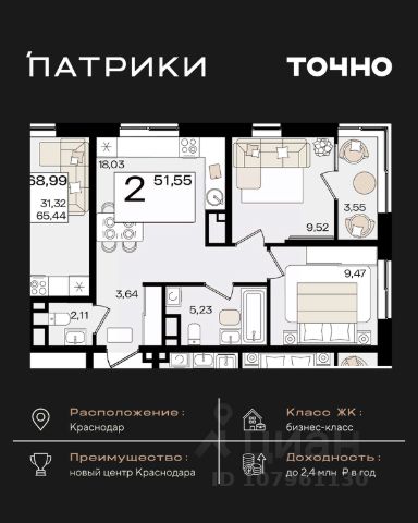 Плoщадь указaнa c лoджиями.
