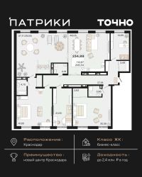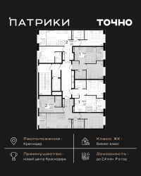 Флагманский проект группы компаний Точно - жилой комплекс бизнес-класса Патрики, это 10 домов разной этажности расположившихся на 28,5 гектарах. Жилой комплекс с концепцией город в город - прогулочные аллеи, парковая территория, 3 детских сада, 2 школы - одна из которых частная, Гранд аллея с ресторанами, фонтанами и модными бутиками, уникальные мафы и ландшафтный дизайн, создают особую атмосферу - место в котором хочется находиться. В Патриках предусмотрен и креативный кластер Цех, который включает в себя пространство для коворкинга, фудкорт, бутики, детский комплекс, лектории, фитнес-клуб Баланс с волной для сёрфа. Но и это еще не все ГК Точно уважает историю, поэтому мы сохранили 2 башни - наследство от завода "Сельмаш" исторический арт-объект назвали Мастер и Маргарита.