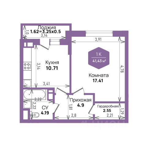 — Площадь — 37 м², а с балконом — все 41 м².