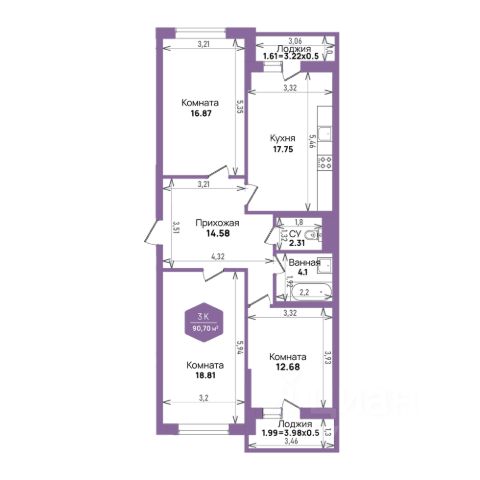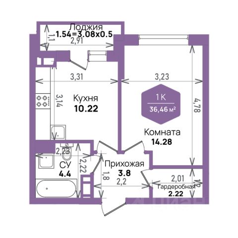 — Планировка радует: жилая комната почти 15 м², просторная кухня — 12 м², полноценный выделенный гардероб — 2,3 м², и ленточный балкон с двумя выходами — из кухни и из зала.