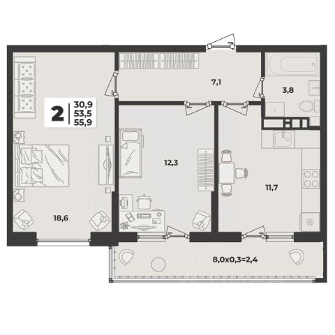 Продаётся 1-комнатная квартира в сданном доме (Литер 2.4), срок сдачи: II-кв. 2024, общей площадью 35 кв.м., на 1 этаже. Расположение, транспортная доступность