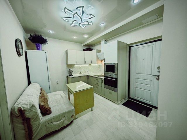 В квартире выполнен ремонт в светлых тонах. Хорошая планировка с комнатой правильной прямоугольной формы и просторной кухней, в которой уже установлен кухонный гарнитур.. Санузел совмещен, установлена новая качественная сантехника. С кухни есть выход на застекленную лоджию.