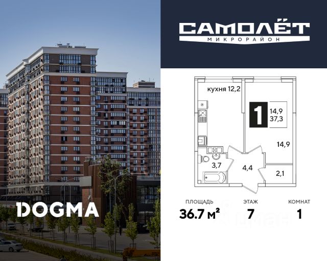 DOGMA - ТОП-3 застройщик по объему строительства в РФ. "САМОЛЁТ" — концептуальный жилой микрорайон, который расположен на северо-западе Краснодара, в районе Западного Обхода. Квартал спроектирован как "город в городе", поэтому здесь будет всё для комфортной жизни: современные дома с разными планировками, дороги, школы и детские сады, поликлиника, торговые центры, парки и аллеи. Микрорайон находится далеко от промышленных предприятий, сочетает удобство городской жизни и экологически благоприятную среду. Инфраструктура нового микрорайона: • 4 школы и 9 детских садов на территории микрорайона • Функциональные планировки • Собственный бульвар протяжённостью 1,6км • Светомузыкальный фонтан протяжённостью 55 метров • Амфитеатр • Парк 7 ГА • Скейт-парк • Детская аква-площадка • Круглосуточное видеонаблюдение и пост охраны Приобрести квартиру можно одним из способов: ипотека, рассрочка, наличный расчет.