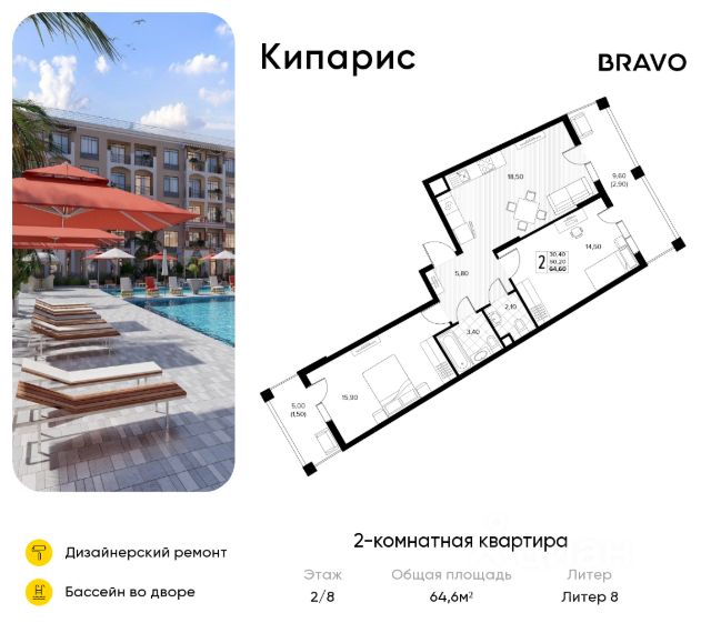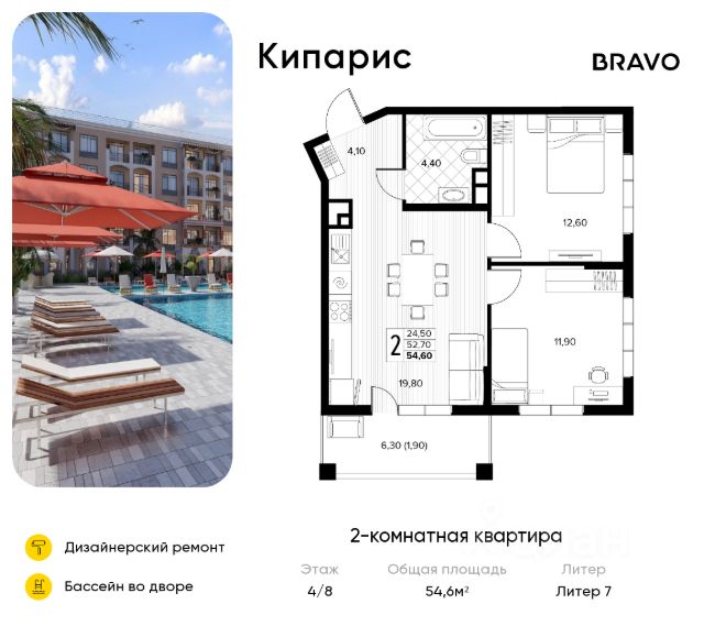 Продается 2-комнатная квартира площадью 53.90 кв. м без отделки, расположенная на 4 этаже, в новом жилом комплексе комфорт-класса "Кипарис". Прекрасный район, окруженный реликтовыми лесами и живописным рельефом гор. Адрес жилого комплекса - муниципальный округ Анапа, село Сукко, улица Мирная, дом 13. "Кипарис" - это жилой комплекс, где проявляется страсть к жизни. Здесь собраны все условия для активного отдыха, 19 бассейнов на территории, собственная развитая социальная инфраструктура и множество квартир с вдохновляющими пейзажами на долину Сукко. Транспортная доступность • Регулярный общественный транспорт для пешеходов • 3 км до Черного моря • Кипарисовое озеро в 7 минутах езды • 12 км до Анапы • 25 км до вокзала • 34 км до аэропорта Архитектура, вдохновленная побережьем моря В состав проекта "Кипарис" вошло 7 домов высотой от 4 до 8 этажей, архитектура которых вдохновлена стилем средиземноморского возрождения. Открытые балконы дают возможность быть ближе к природе. Уникальные террасы, мастер-спальни, просторные гардеробные, лоджии и окна с красивым видом - в планировках продумана каждая мелочь, что и формирует особое ощущение комфорта. Особое внимание в комплексе уделено созданию зон для отдыха и развлечений: на территории расположено 19 бассейнов, которые обеспечивают жителям возможность наслаждаться водными процедурами в любое время, создавая атмосферу курорта прямо у вас дома. Это идеальное место для семейного досуга, где можно расслабиться, позагорать или провести время с друзьями. Бассейны также оборудованы зонами для активных игр и отдыха, что делает "Кипарис" идеальным местом для тех, кто ценит комфорт и активный образ жизни. Насыщенное благоустройство Дом в долине Сукко - это не только бескрайние морские виды, зеленые леса и горы, не только полезный морской воздух, насыщенный ароматом краснокнижного можжевельника и сосен, но и также обширное благоустройство, где резидентам каждый день доступно все необходимое для комфортного отдыха. Во дворе каждого дома находится комплекс бассейнов, уютные шезлонги с зонтиками, изолированные детские и спортивные площадки, теннисные корты, зоны для пикников и барбекю. Двор закрыт от машин: за территорией комплекса предусмотрен паркинг на 3563 машино-места. Инфраструктура • Салоны красоты, кафе, магазины, аптеки на первых этажах; • Собственные детский сад на 200 мест и школа на 1100 мест; • Яхтинг, серфинг и дайвинг в шаговой доступности; • Винодельни, заповедники и достопримечательности в ближайшем окружении. Чтобы узнать подробности, обращайтесь за консультацией по телефону.