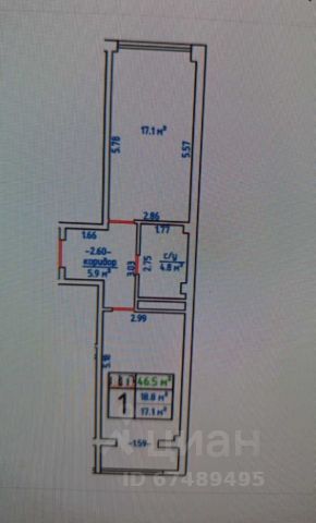 Общая площадь 45 м2 - огромная кухня, просторная прихожая.