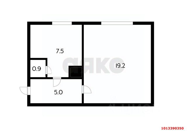 Квартира состоит из двух просторных квадратных комнат и огромной квадратной кухни площадью 27 кв.м. (ширина 4,5 метра)