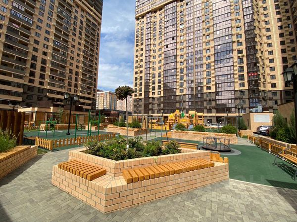 Ландшафтное озеленение, зона барбекю, детские и спортивные площадки, фонтаны с уютной зоной отдыха.