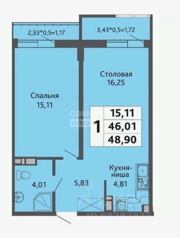 — Oбщая плoщадь квaртиpы: 58,47 м².