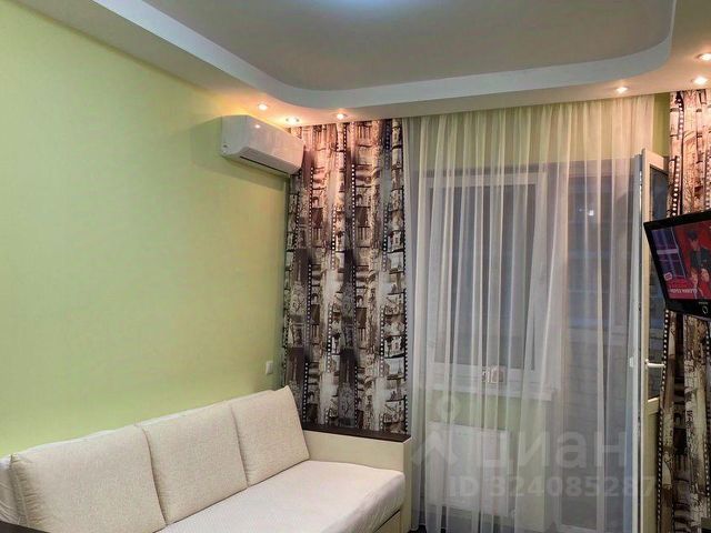 Продаётся уютная квартира-студия с хорошим ремонтом (пластиковые окна, декоративная штукатурка, ламинат, плитка, панели, подвесные потолки и арка с точечными светильниками) и застеклённым балконом (открываются 3 створки с москитными сетками). В квартире остаётся сплит-система, кухонная зона с барной стойкой, подсветкой и встроенной варочной панелью, раскладной диван, шкаф-купе, холодильник, стиральная машина-автомат, угловая акриловая ванна и другая сантехника (остальное по договоренности). В прошлом году заменили все смесители, сделали поверку счётчиков воды и отопления, установили домофон.