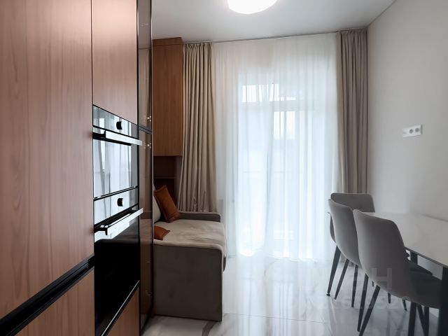 В квартире остаётся: кухонный гарнитур укомплектованный бытовой техникой ,холодильник, , два кондиционера, встроенный гардероб- в комнате-не нужны шкафы, прихожка встроенная , везде натяжные потолки, новая дверь входная, в ванной- душевая, стиральная машина, диван на кухне-раскладной .