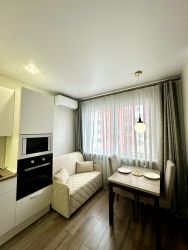 Новая, полностью укомплектованная 1-комнатная квартира, 33,5 м², ЖК "Спортивный парк" Новознаменский. Продается светлая 1-комнатная квартира общей площадью 33,5 м², расположенная на 3 этаже из 8 в жилом комплексе "Спортивный парк". . Квартира полностью укомплектована новой мебелью и техникой, готова к приезду новых собственников. В квартире установлена вся необходимая мебель и техника для комфортного проживания. Описание квартиры: * Площадь: 33,5 м² * Этаж: 3/8 * Комнаты: 1 * Кухня-гостиная: 16 м², встроенная мебель и техника ( холодильник, стиральная машина, посудомоечная машина, электрическая плита, вытяжка, духовка, микроволновая печь, кондиционер) * Балконы: 1, с остеклением и ремонтом (с местом для сушки вещей) * Окна: классическое остекление * Санузел: совмещенный, с бойлером на 100 литров * Высота потолков: 2.8 м * Состояние: идеальное. Квартиру делали для собственного проживания, во время ремонта продумали большое количество розеток, полноценную гардеробную, установили качественную мебель и технику. Описание дома: * Тип дома: монолитный * Год постройки: 2019 * Подъезд: чистый, * Лифт: один грузовой лифт Инфраструктура ЖК: * Жилой комплекс находится в экологически чистом районе, малоэтажная застройка и большое количество частных домов вблизи делают этот район максимально комфортным для жизни * Придомовая территория имеет большое количество парковки , детские и спортивные площадки * Малоэтажная застройка Инфраструктура района: * Новознаменский микрорайон — один из самых тихих и экологических районов города Краснодар * 15 минут пешком до детского сада 231 и гимназии 88. На машине ехать всего 3 минуты. Так же детей каждое утро забирает автобус в микрорайон Комсомольский, где располагается еще 3 школы. * В нескольких минутах пешком расположены остановки общественного транспорта. Есть пеший очень удобный выход на улицу уральскую. * В пределах 15 минут продуктовый рынок, аптеки, продуктовые магазины, пункты выдачи. Эта квартира — отличное решение для комфортного проживания в современном районе с развитой инфраструктурой. Звоните и зарисуйтесь на просмотр! Продам квартиру на улице Войсковая в жилом районе Новознаменский в городе Краснодар.