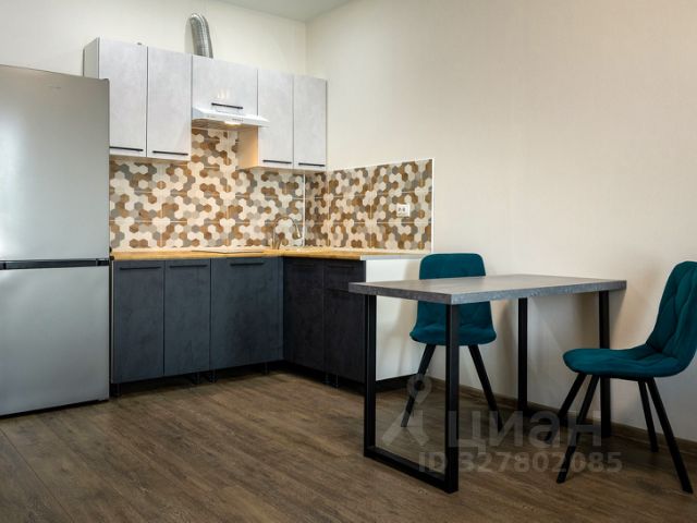 Кухня оборудована современным гарнитуром, варочной панелью и холодильником.