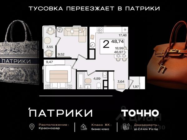 Флагманский проект группы компаний Точно - жилой комплекс бизнес-класса Патрики, это 10 домов разной этажности расположившихся на 28,5 гектарах. Жилой комплекс с концепцией город в город - прогулочные аллеи, парковая территория, 3 детских сада, 2 школы - одна из которых частная, Гранд аллея с ресторанами, фонтанами и модными бутиками, уникальные мафы и ландшафтный дизайн, создают особую атмосферу - место в котором хочется находиться. В Патриках предусмотрен и креативный кластер Цех, который включает в себя пространство для коворкинга, фудкорт, бутики, детский комплекс, лектории, фитнес-клуб Баланс с волной для сёрфа. Но и это еще не все ГК Точно уважает историю, поэтому мы сохранили 2 башни - наследство от завода "Сельмаш" исторический арт-объект назвали Мастер и Маргарита. Купить квартиру на улице Сормовская в городе Краснодар.