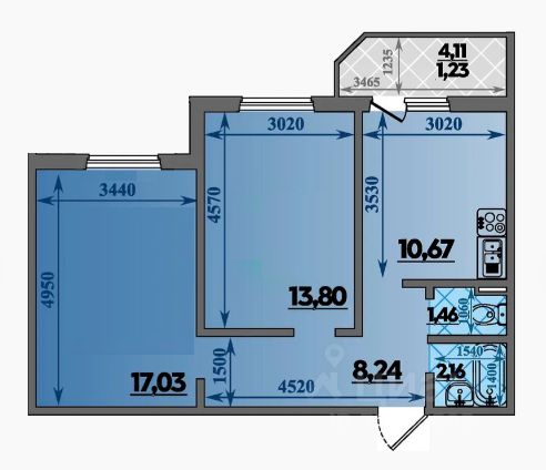 Полноценная 3-комнатная планировка