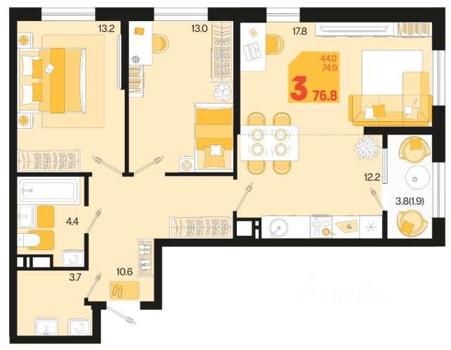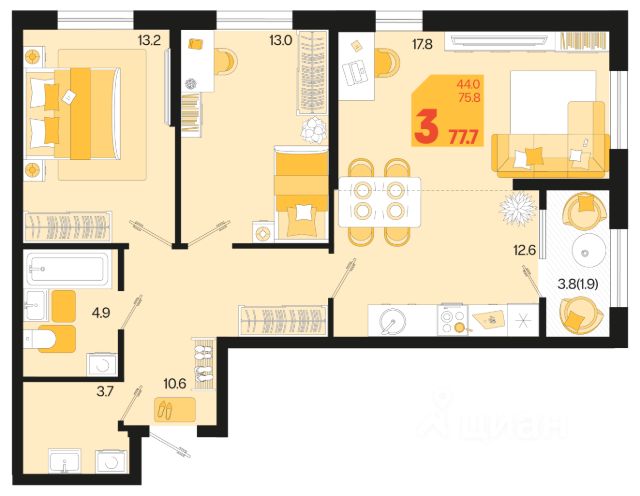 Продаётся 1-комнатная квартира в строящемся доме (Квартал 1.10 - Литер 2), срок сдачи: IV-кв. 2026, общей площадью 30.1 кв.м., на 13 этаже. Жилой район "Первое место"- один из самых масштабных проектов в России. На территории 71 га 18 кварталов, 31 дом переменной этажности от 8 до 18 этажей, собственный парк 9 га, храмовый комплекс, пешеходный бульвар "Круг семьи", детские и спортивные площадки, мангальные зоны и различные локации для отдыха. В шаговой доступности действующие муниципальные образовательные учреждения: школа на 1 100 мест и детский сад на 250 мест. Помимо этого, в жилом районе "Первое место" построятся школа на 1700 мест с крытым 25-метровым бассейном и 5 детских садов на 1 490 мест. На первых этажах многоуровневых парковок "паркхабов" разместится более 61 тыс м2 коммерческих помещений. Жителям будут доступны собственный фитнес-центр, кафе, рестораны и магазины. В каждом подъезде предусмотрены дизайнерские холлы в стиле лобби отелей, консьерж-сервис, лапомойки, отдельные колясочные и велосипедные. Также в домах будут просторные кладовые помещения и комнаты для хранения почты с почтоматами для получения посылок из маркетплейсов. Доступ в жилую зону будет осуществляться с помощью специального смарт-ключа и приложения на смартфоне.