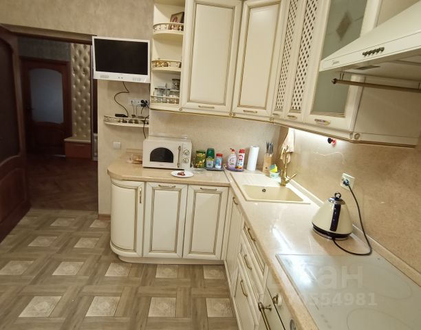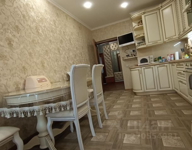 На кухне установлен кухонный гарнитур из массива дерева, изготавливался под заказ под замеры кухни. Вся бытовая техника встроена и подключена, выбиралась одной марки и в одном тоне, качественная. Мойка из камня, фильтр для питьевой воды, краны все не из дешевых. Сплиты в каждой комнате и на кухне. Стол и 6 стульев из массива дерева. Диван на кухне тоже изготавливался по индивидуальным размерам. Стиральная машинка спрятана за дверцами в кухонном гарнитуре.