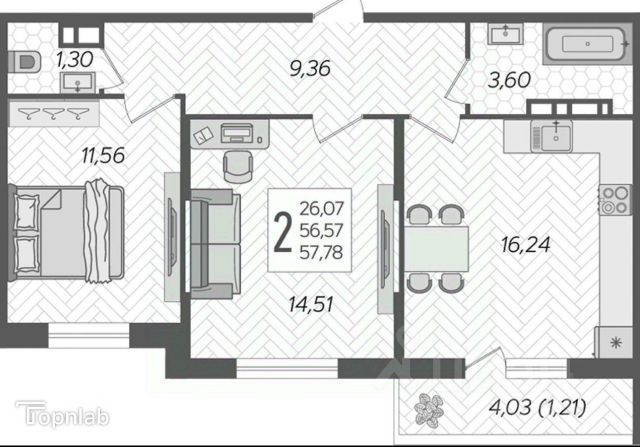 В квартире две изолированные комнаты и кухня, сделана предчистовая отделка от застройщика. Установлены счетчики.