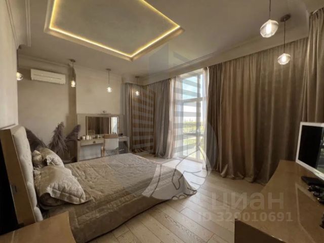 11 комнатная квартира состоит из основной спальни как отдельный приватный блок: гардеробная, санузел, кабинет с ванной, двух гостевых спален, двух ванных и двух душевых, детской комнаты, зала, столовой / кухни, рабочей зоны, спортзала, spa-зоны (сухая сауна, хаммам, джакузи), кинотеатра одного из лучших на Юге России.