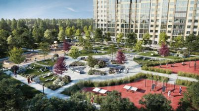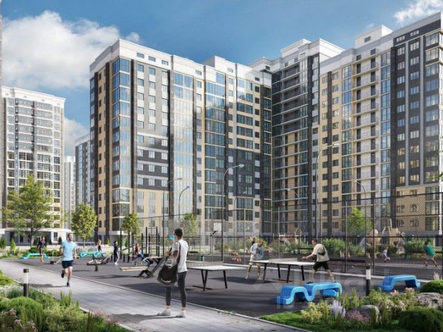 Четырнадцать зданий квартала образуют уютное дворовое пространство, в котором предусмотрены: наземный паркинг, детские городки, площадки для занятия спортом и поля для спортивных игр со специальным покрытием, тротуары, газоны и цветники.