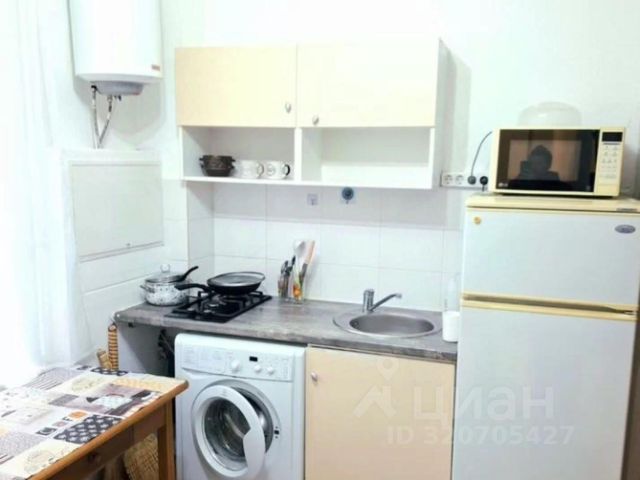 Уютная светлая студия в общем дворе-на земле. В студии предусмотрено все: диван, стол, шкаф комод. Студия светлая, залита солнцем. Кухня оборудована всей необходимой утварью, бытовой техникой и гарнитуром для кухни. В санузеле-душевая, все отделано кафелем. установлен бойлер для горячей воды. Зимой студия отапливается газом. Можно включить газ на 4 часа- студия теплая целый день зимой. Коммунальные платежи 2000 зимой, летом 300 рублей за электричество Дополнительно установлен теплый пол в санузле, коридоре-кухне. Температуру можно регулировать включателем. Студия отделана очень хорошо. Вам понравиться. Дополнительно в общем дворе имеется земельный участок 10-12 кв.метров.Можно построить мастерскую-кладовку или летнюю кухню.