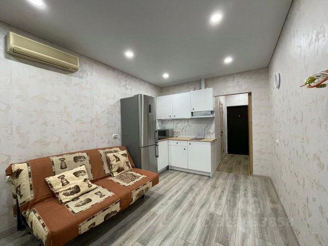 Продаю студию . Собственник, без посредников и переплат. Помощникам по продажам не звонить ! Обременений нет. Ремонт делал сам, по уму. Теплые полы в комнате и на балконе. Много места для хранения одежды и вещей. Два шкафа до потолка. Балкон застеклен. Есть выводы для бойлера, но необходимости в нем нет. Тепловой индивидуальный счётчик на квартиру. Возле дома много паркочных мест.До остановки на ул.Российская 300м. Фитнес клуб, школа, садик, все рядом.