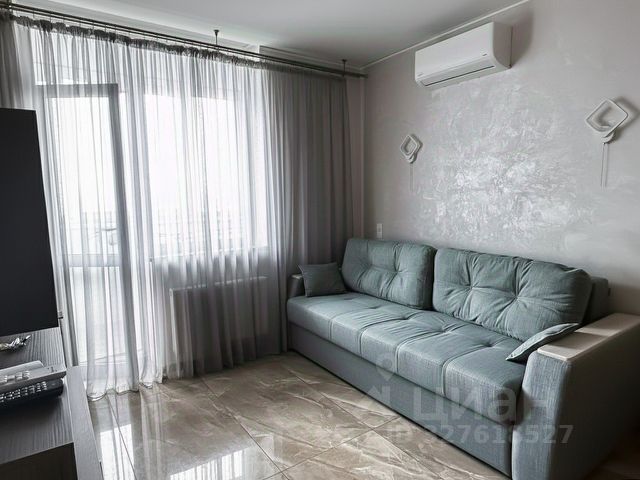 В квартире сделан качественный дизайнерский ремонт, использованы дорогие отделочные материалы, в том числе уникальные импортные облицовочные плиты. Зона лоджии удачно дополняет пространство комнаты, увеличивая жилую площадь, и имеет теплый пол. В стенах студии вмонтированы несколько больших зеркал, освещение в квартире выполнено с использование точечной и зонной подсветки. В ремонте санузла также использованы качественные материалы. В гостиной-кухне установлена сплит-система, мебель остается.