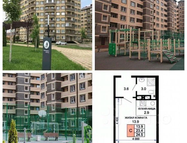 Продаётся 1-комнатная квартира в строящемся доме (Литер 30 - 18 этап), срок сдачи: IV-кв. 2025, общей площадью 25.5 кв.м., на 2 этаже. Расположение, транспортная доступность Проект комплексной застройки ЖК "Дыхание" расположен в Прикубанском округе, на северо-восточной окраине Краснодара, вблизи поселка Российский. Одно из ключевых достоинств района - чистый воздух и обилие свободных пространств. По соседству с полями и пригородными ландшафтами с нуля создаются жилые кварталы со своей коммерческой, социальной и транспортной инфраструктурой. В непосредственной близости от комплекса находится остановка автобуса 146а и маршрутного такси 170а, которые едут до железнодорожной станции и автовокзала "Краснодар-2", Чистяковской рощи и центральных улиц города - Красной и Александровского бульвара. Расстояние до аэропорта Краснодар (Пашковский) - 20 км, до автотрассы М-4 "Дон" (Москва - Новороссийск) - 7 км, до железнодорожного вокзала - 16 км. Инфраструктура Внутри комплекса планируется открытие школы и детского сада, а также магазинов, сервисных служб, офисов и других объектов коммерческой инфраструктуры. На автобусе 146а или маршрутном такси 170а можно доехать до гипермаркета "Магнит", краевой клинической больницы, поликлиники, Института культуры, концертного зала или дома спорта "Динамо". В десяти минутах езды на автомобиле расположены гимназия "Лидер", общеобразовательная школа 66, несколько детских садов, а в двадцати минутах находится один из крупнейших в городе торгово-развлекательных комплексов - мега-центр "Красная площадь". Надежность застройщика Работу над ЖК "Дыхание" начала компания "Новосфера", которая оформила всю проектную документацию и получила в сентябре 2015 года разрешение на строительство первой очереди домов. Позднее проект был выкуплен краснодарским холдингом "СпецСтройКубань", который занимается строительством жилой и коммерческой недвижимости с 2013 года. В состав группы входят генподрядная компания ("СпецСтройКапитал") и фирмы-застройщики ("Гамма", "КСО", "КСК" и другие). На момент начала строительства ЖК "Дыхание" в активе предприятия был собран десяток объектов, среди которых сданные в эксплуатацию жилые комплексы "Барселона", "Каскад", "Пируэт" и другие. В городе было открыто два офиса продаж и шоу-румы объектов. С покупателями квартир заключаются договоры долевого участия с регистрацией в Росреестре, предлагаются льготная ипотека, рассрочка и другие способы оплаты (материнский капитал, военная ипотека). Архитектура Микрорайон "Дыхание" задуман как проект комплексной застройки: 30 девятиэтажных монолитных домов на территории 39 гектаров На первом этапе строится 12 корпусов (1-12), которые сгруппированы в кварталы по шесть домов, образующих внутренние дворы. Реализуется поквартальный принцип застройки. Первый этап новый застройщик назвал ЖК "Дыхание" и представил покупателям квартиры с предчистовой отделкой и общей площадью от 23 кв. м (студии) до 56 кв. м (трехкомнатные). В квартиры будут проведены интернет и телеф