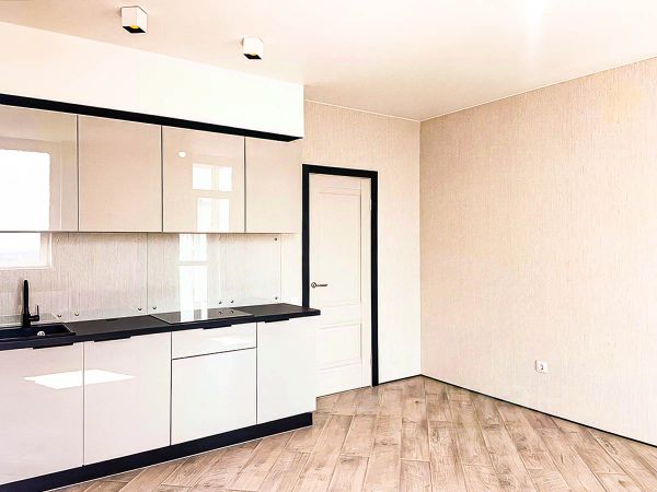 В квартире выполнен ремонт в светлых тонах. Хорошая планировка с комнатой правильной прямоугольной формы и просторной кухней, в которой уже установлен кухонный гарнитур.. Санузел совмещен, установлена новая качественная сантехника. С кухни есть выход на застекленную лоджию.