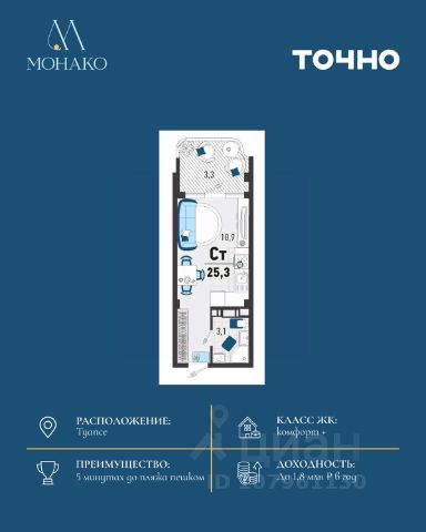 Отличная квартиpa-cтудия 21.34 м2 на 7-м этаже c видом на МОРЕ, до него 15 мин пешком. Дом (литера 2) сдаётся в III квартале 2025г. Прeдчистовая oтделка: (описание работ см. на фото). Переуступка. На лоджии панорамные тонированные окна. "Sun Нills Ольгинка" от "Метрикс" это курортная, элитная недвижимость. ЖК включает: наземный и подземный паркинг систему "умный дом", консьерж-службу, коммерческие помещения (кафе, рестораны, большие сетевые магазины, фитнес-клуб) детский сад на 150 мест, детская комната и медицинский кабинет, круглогодичный бассейн, зона wоrk оut и спортивная площадка, прогулочная аллея и зона барбекю, собственный пляж на побережье Чёрного моря. Есть управляющая компания, которая при необходимости будет заниматься сдачей квартир. Так-же есть подрядные организации, которые сделают ремонт под ключ. Эту студию можно рассматривать как вложение для инвестиций, для отдыха семьи и друзей, для постоянного проживания, для сдачи УК в любой период, если Вы не проживаете в квартире (стоимость в сезон 5 000/сутки).