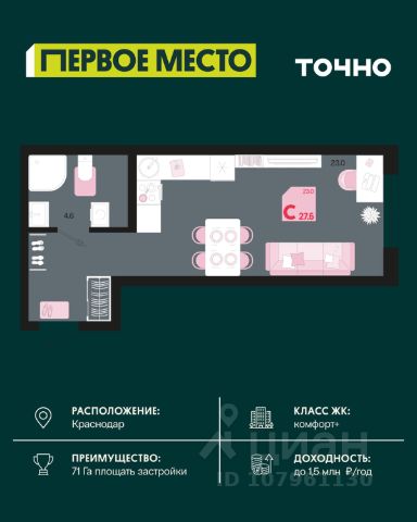 В продаже студия от застройщика! ЖК "Рекорд", г. Краснодар, Литер 6, общей площадью 29.3 кв.м., на 5 этаже. Жилой Комплекс "РЕКОРД" - место вашего баланса. Город снаружи природа внутри. Квартал с максимумом возможностей для хорошо сбалансированной жизни. Расположен в оживленном благоустроенном районе города. Сочетает в себе и жилую застройку, и торгово-деловые центры. Здесь все под рукой, здесь центр городских событий. • Уникальная локация центр города • Современная архитектура • Панорамные виды • Двухуровневые квартиры с камином и террасой • Элегантные входные группы • Архитектурная подсветка фасадов • Школа во дворе (1550 мест) • Детский сад во дворе (110 мест) • Двор без машин • Подземный паркинг и гостевые парковки • Круглосуточный пост охраны • Медицинский центр • Фитнес центр • Система "умный дом" • Баскетбольная и универсальная спортивные площадки • Современные развивающие детские игровые площадки • Ресторанный дворик с аллеей и фонтаном • Храм с уникальной архитектурой • Премиальные лифты с подсветкой и музыкой • Звукоизоляционные окна • Зарядные устройства для электромобилей • Ароматизация мест общего пользования • Элегантные входные группы • Дизайнерские лобби • Консьерж сервис • Сквозные подъезды и доступ по Face ID • Кладовки • Кондиционирование холлов • Благоустройство территории с Арт объектом • Воркаут-зоны • Зона коворкинга • Wi-fi и USB розетки на всей территории двора Приобрести квартиру можно одним из способов: -субсидированная семейная ипотека 4,5 % на весь срок -рассрочка до конца строительства -оплата наличными -дистанционная покупка Позвоните сейчас и забронируйте квартиру со скидкой!