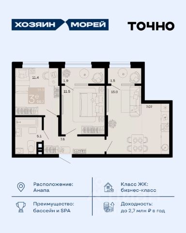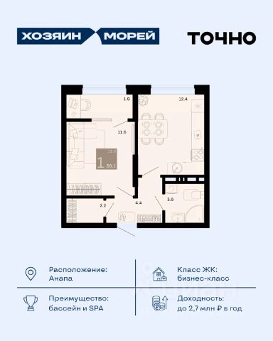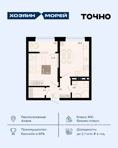 Откройте для себя мир комфорта и роскоши в жилом комплексе бизнес-класса "Хозяин морей". 9 домов от 8 до 12 этажей окружены благоустроенной территорией с прогулочными дорожками, бассейнами, детскими площадками, пространством для спорта и отдыха, двумя садиками и просторной школой. Здесь представлены разнообразные планировки: от комфортабельных студий площадью 33 кв.м до просторных семейных квартир с уникальными видами на бескрайнее море — идеальная комбинация уюта и статуса!