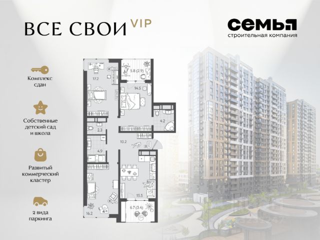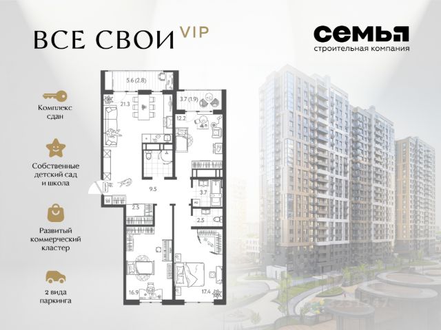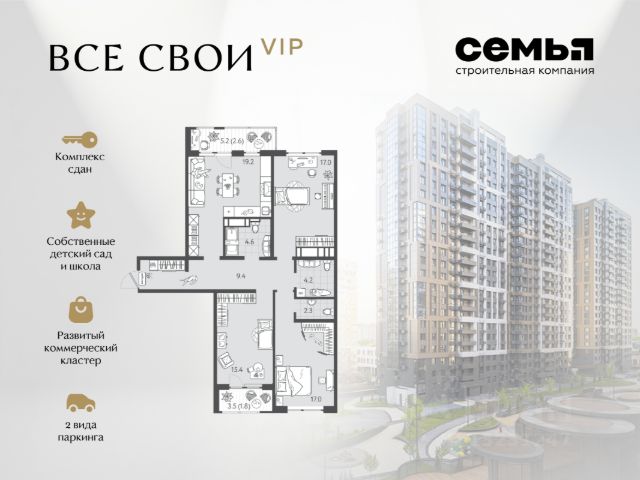 ЖК "Все свои VIP" — квартира бизнес-класса в центре Краснодара. Инфраструктура, стиль, инвестиции. Это не просто жильё — это образ жизни с высоким уровнем комфорта, статуса и выгоды. "Все свои VIP" — отличный выбор: • Локация премиум-уровня: всего 10 минут и вы у главной артерии города - улица Красная. Всё нужное рядом: торговые точки, кафе, культурные объекты, прогулочные зоны. Удобный выезд в любом направлении города. • Полностью развитая инфраструктура внутри комплекса: школа и детский сад, коммерческие галереи, закрытая территория, двор-парк, спортивная и детская площадки. • Интеллектуальные планировки: максимум полезного пространства для ваших целей. Высота потолков до 3 метров. • Панорамное остекление дарит вам впечатляющий вид на центр столицы Кубани. • Система умный дом: управление доступом во двор или в подъезд, телеметрия и домофония в вашем смартфоне. Для автолюбителей интеллектуальный шлагбаум. • Отличный вариант для инвестиций благодаря расположению и классу жилья. Выгодные условия приобретения • Возможность приобрести квартиру с максимальной выгодой — до 2 190 000 ₽. • Семейная ипотека от 2,5%. • IT ипотека - 6%. • Возможность покупки по господдержке и с использованием маткапитала. • Рассрочка с удобным графиком платежей. СК Семья входит в топ-5 среди застройщиков Краснодарского края. Надёжная компания с десятками реализованных проектов. Звоните — поможем Вам сделать правильный выбор и подобрать лучший вариант под ваш бюджет и цели.