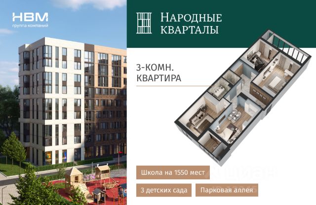 Жилой район "Народные кварталы" Комфортный мир, где каждая деталь создана для удобства и гармонии. Что порадует в домах: Дизайнерские входные группы с просторными колясочными и велосипедными — все для комфорта с первого шага. Монолитно-кирпичная технология строительства гарантирует тепло, надежность и долговечность. Высота потолков до 3,9 м наполняет пространство светом и воздухом, создавая ощущение свободы. Предчистовая отделка избавит от пыльных и шумных работ — вы сможете сразу же начать обустраивать свой новый дом по своему вкусу. Первые этажи предназначены для коммерческой недвижимости, что обеспечивает удобство и доступность всех необходимых услуг. О придомовой территории: Просторные пешеходные зоны, пандусы и гостевые парковочные места создают комфортную среду для прогулок и отдыха всей семьи. Закрытая охраняемая территория с видеонаблюдением обеспечит вам полное спокойствие и безопасность. Многоуровневый паркинг на 5000+ машиномест — забудьте о проблемах с парковкой! Детские и спортивные площадки, зеленый бульвар — идеальное место для активного отдыха и общения с соседями. Три детских сада по 350 мест и школа на 1550 мест — все для удобства ваших детей. Более 18 000 м² пространства для занятий спортом: футбол, баскетбол или теннис — выберите то, что вам по душе! Все необходимое — на расстоянии вытянутой руки: ТРЦ "Красная Площадь", "Метро", "Стрелочка" — шопинг и развлечения для всей семьи. Супермаркеты, аптеки, рестораны и остановки общественного транспорта — все для вашего комфорта. Прямая продажа от застройщика. Живите там, где удобно, где уютно и где всегда рядом все, что нужно для жизни. Выбирайте ЖР "Народные кварталы".
