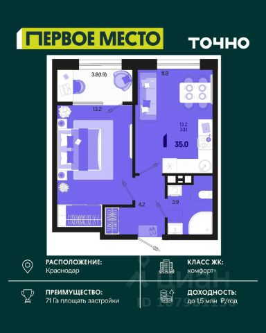 Семейная ипотека от 4,5% ЖК "Друг" — это проект нового формата, ориентированный на комфортную городскую среду в молодом и перспективном районе Краснодара. Комплекс объединяет 11 корпусов и включает в себя всё, что нужно для жизни: от подземного паркинга до насыщенной придомовой инфраструктуры. Здесь нет машин во дворе — только зелёные зоны, детские площадки, спортивные пространства и настоящая атмосфера уюта. Особая гордость комплекса — благоустроенная территория: скейт-зона, теннисные столы, барбекю-площадки и прогулочные аллеи, которые создают уникальное ощущение "своего двора". ЖК "Друг" предлагает широкий выбор планировок, продуманную архитектуру и выгодные финансовые условия.