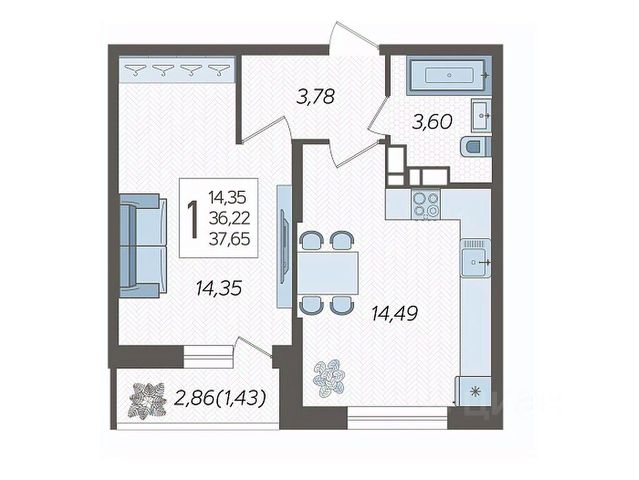 Продаётся 1-комнатная квартира в строящемся доме (литер 35), срок сдачи: I-кв. 2026, общей площадью 37.34 кв.м., на 13 этаже. Квартал 6 — это новый современный квартал в жилом районе Восточный с полной инфраструктурой и обновленным проектом благоустройства территории: