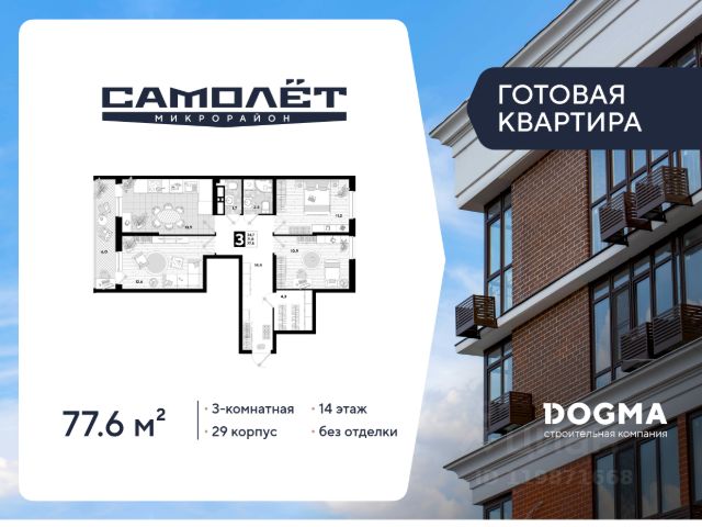 Продаётся 1-комнатная квартира от застройщика DOGMA. Основные характеристики: • Площадь: 38.70 кв. м • Отделка: с отделкой white box • Расположение: город Краснодар, улица Западный обход. • Жилой комплекс: новый жилой квартал бизнес - класса "Самолёт 7" . "Самолёт 7" - это квартал бизнес-класса в рамках крупнейшего микрорайона в России. Здесь история успеха встречается с амбициями будущего. Проект вдохновлен колоритом кубанских рек и лесов, гармонично подчиняя природу общему архитектурному замыслу. Преимущества жилого квартала "Самолёт 7". Транспортная доступность • 10+ остановок общественного транспорта в шаговой доступности. • 15 минут на автобусе до Ботанического сада имени И. Косенко. • 15 минут на автомобиле до Елизаветинского шоссе. • 19 минут на автомобиле до центральной Красной улицы. Динамичная архитектура Архитектура каскадного строительства вдохновлена золотистыми кубанскими полями и серебристыми реками. Ключевые особенности: • Монолитно-кирпичные технологии с использованием системы Cuuber. • Безупречно гладкие навесные вентилируемые фасады благородного оттенка латуни. • Стекла с напылением, дарящие абсолютную приватность. • Высококачественные материалы, гарантирующие прочность и долговечность. • Равномерная вечерняя подсветка, подчеркивающая геометрию здания. Гранд-лобби Персональный клуб для резидентов - это пространство, которое подходит для всех жителей, включая людей с особыми потребностями. Интерьеры впечатляют современностью и вкусом. Внутреннее наполнение: • Зона ресепшн. • Камерные лаунж-зоны и мягкая мебель. • Помещения для хранения и колясочные. • Гостевой санузел. Особый колорит придают: • Потолки высотой 3,9 метра. • Окна в пол. • Лифтовые порталы с латунными вставками. Собственная река Собственная река, протекающая через весь квартал, геопластика рельефа и двор-сад в японском стиле создают приватное пространство - отражение личных смыслов и ощущений. Перголы, увитые зеленью, вечерняя подсветка фасадов и камерная атмосфера станут излюбленным местом для встреч в любое время. Внутренняя инфраструктура На первых этажах в каждом урбан-блоке созданы привилегированные пространства исключительно для жителей. Всего в квартале 2 закрытых клуба, каждый из которых находится на первом этаже рядом с гранд-лобби. Для резидентов предусмотрены: • Консьерж-сервис, учитывающий даже самые взыскательные пожелания. • Атмосферный кинотеатр. • Фитнес-рум и кидс-клаб. Закрытая территория объединяет SportHub - уникальную локацию для любителей активного отдыха, а также включает детский сад на 280 мест и поликлинику. Технологии Территория закрыта для машин - здесь тихо и безопасно гулять с детьми. Системы безопасности и комфорта: • Круглосуточное видеонаблюдение. • Видеодомофоны для контроля доступа. • Бесконтактный доступ по распознаванию лица или с помощью смартфона. • Лифты, оборудованные "умным зеркалом" (где можно узнать погоду или новости). • В общественных зонах - стабильный Wi-Fi и усиленный сотовый сигнал.