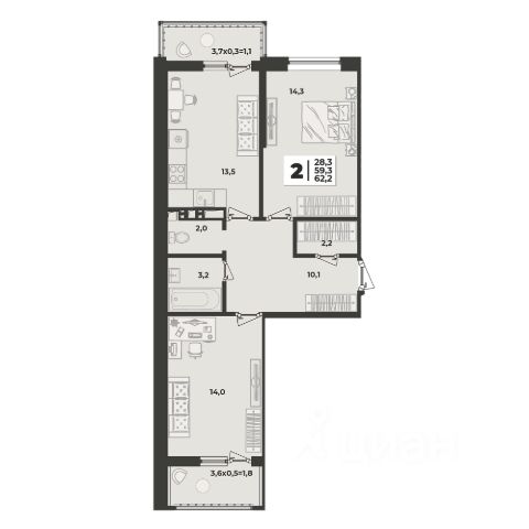 Продаётся 2-комнатная квартира в сданном доме (Литер 2.4), срок сдачи: II-кв. 2024, общей площадью 59.8 кв.м., на 9 этаже. Расположение, транспортная доступность