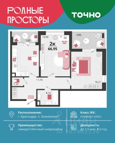-Развитая среда: Вся инфраструктура "под окнами": ТЦ, кофейни, пекарни, фермерские магазины, салоны красоты.