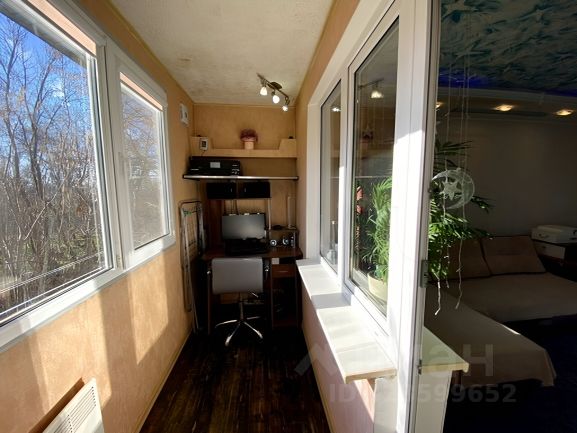 Квартира в середине дома, утеплена снаружи и по чердаку. Балкон теплый, оформлен под кабинет или рабочую комнату.
