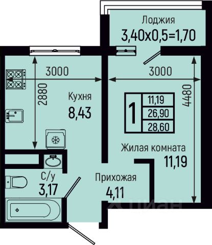 • ✅ Минимальная площадь: 17,1 м²