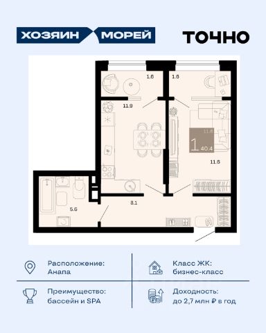 • ✓ В базе Циан 1,1 тыс. квартир бизнес класса от застройщика в муниципальном округе Анапа Краснодарского края