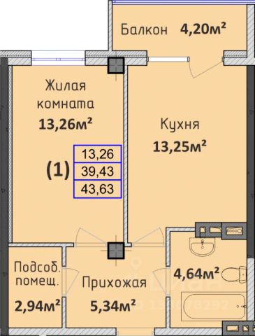Продаётся 1-комнатная квартира в строящемся доме (Секция 1,2), срок сдачи: I-кв. 2026, общей площадью 43.63 кв.м., на 1 этаже. Новый жилой комплекс "Восточный" от застройщика "СЗ СОЛНЕЧНЫЙ ГОРОД" расположен по адресу Краснодарский край, Абинск, Казанская улица, 9.